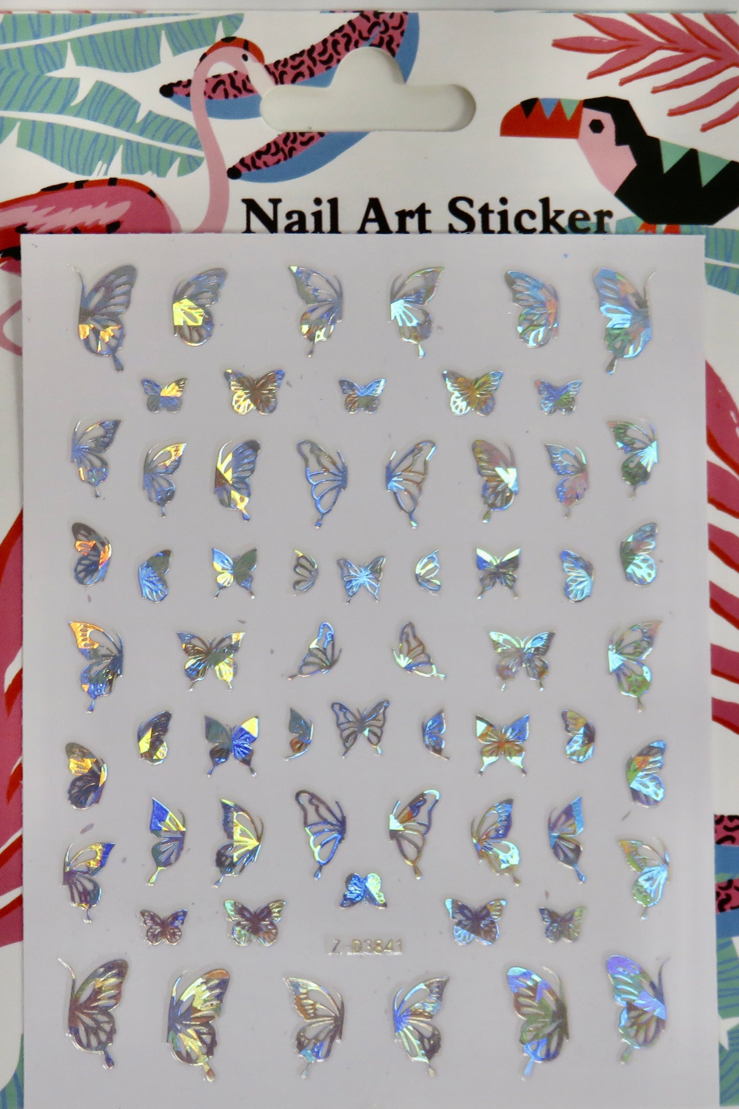 Butterfly Nail Art Stickers Waterproof Silver (D3841)