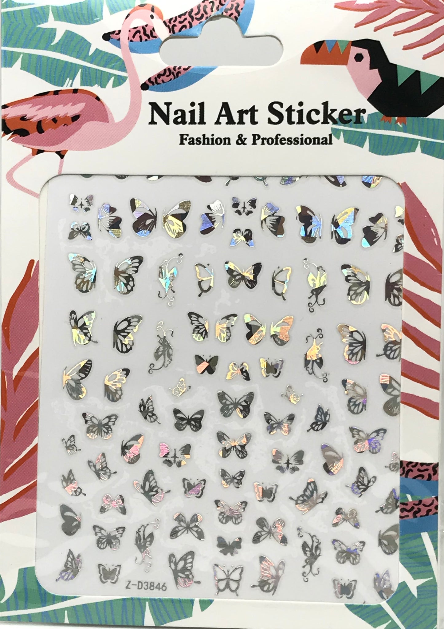 Butterfly Nail Art Stickers Waterproof Silver (3846)
