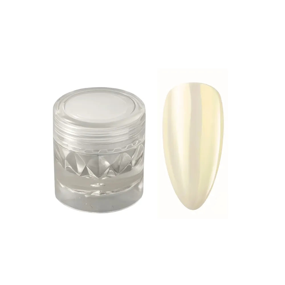 4. Evenly apply the Chrome Powder on top of the topcoat and rub the nail surface until desired effect is achieved. Remove any excess powder.